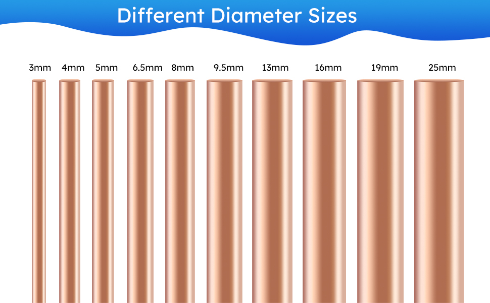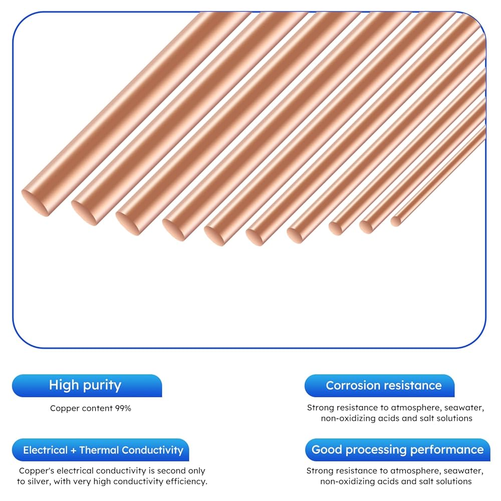 【أحجام متعددة】: يمكنك اختيار أحجام تنوع من قضيب النحاس. (ضياء: 3 ~ 25mm ، الطول: 200 مم و 300 مم).