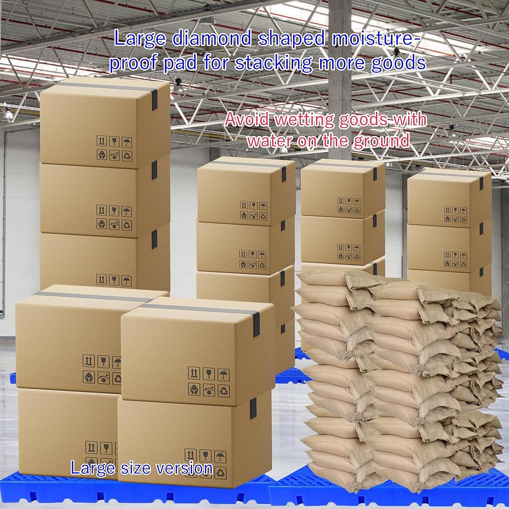 • المادة: منصة بلاستيكية يتبنى المنتج HDPE (البولي إيثيلين عالي الكثافة) قدرة على تحمل جيد للغاية في نفس الوقت مع مراعاة الصلابة ، فإن السطح له جزيئات صغيرة مضادة للانزلاق ، جميلة في نفس الوقت لتجنب بعضها البعض على البضائع التي تنتجها المنزلق
