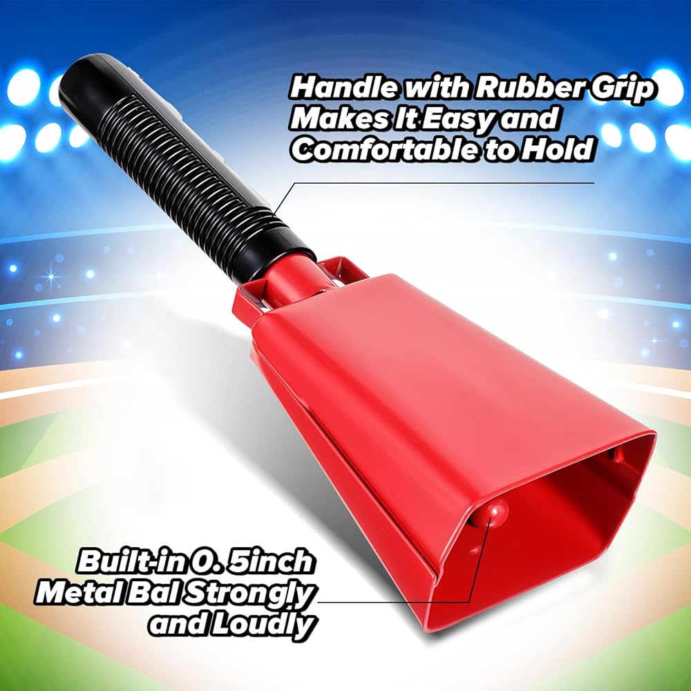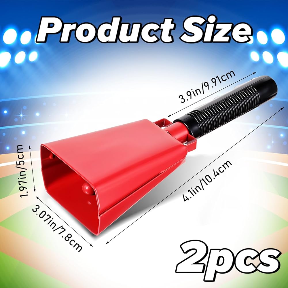 Get ready to make some noise with these vibrant red 8-inch steel cowbells! Perfect for sporting events, concerts, graduations, and any celebration where you want to show your enthusiasm. Each pack includes 2 large cowbells with comfortable handles for easy gripping and maximum noise-making potential.