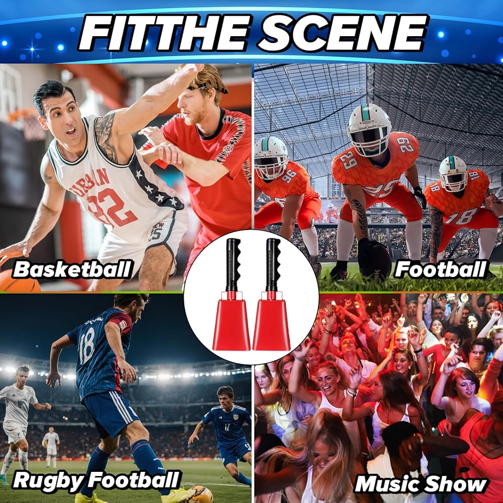 【Loud Voice & Long Echoes】 The sound from the cow bells large is loud and clear, with long vibration time and big echo, you can use the cowbells to show your team honor in sports events during activities, and can bring a powerful cow bell sound to cheer for your favorite team