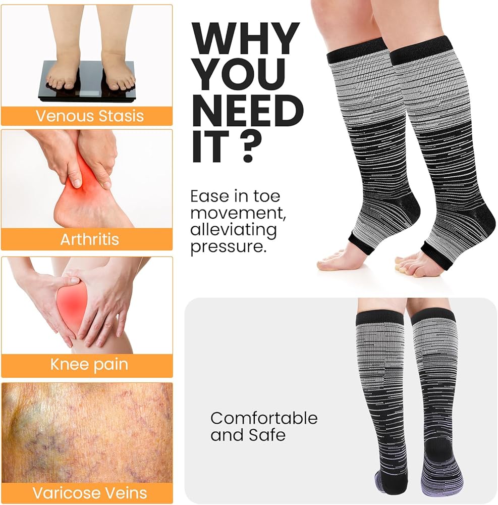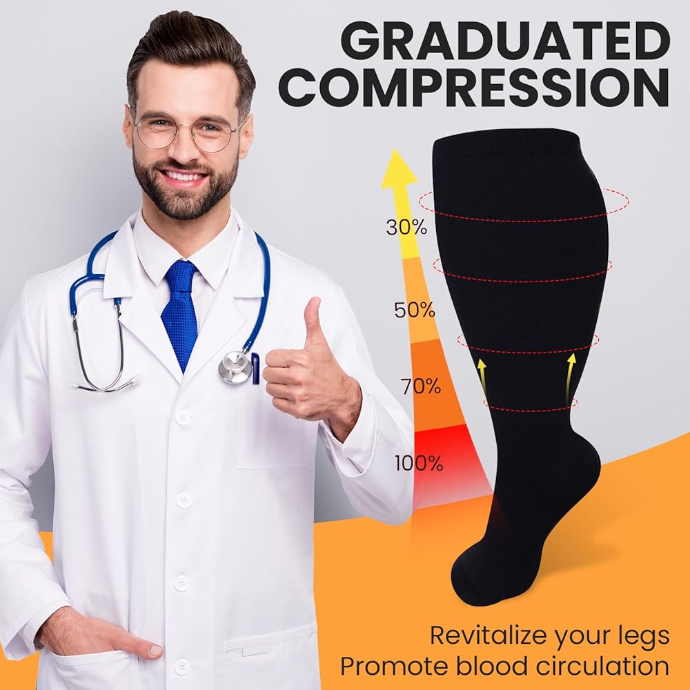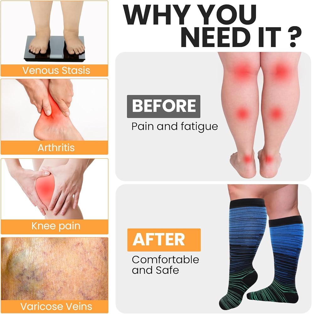 جوارب ضغط العجل الواسعة: مع حجم كبير جدًا ، تم تصميم جوارب ضغط العجل الواسعة للنساء والرجال ؛ تجلب جوارب الدعم العالية في الركبة دعم ساقك القوي والضغط الدائم ، بالإضافة إلى مريحة وتنفس