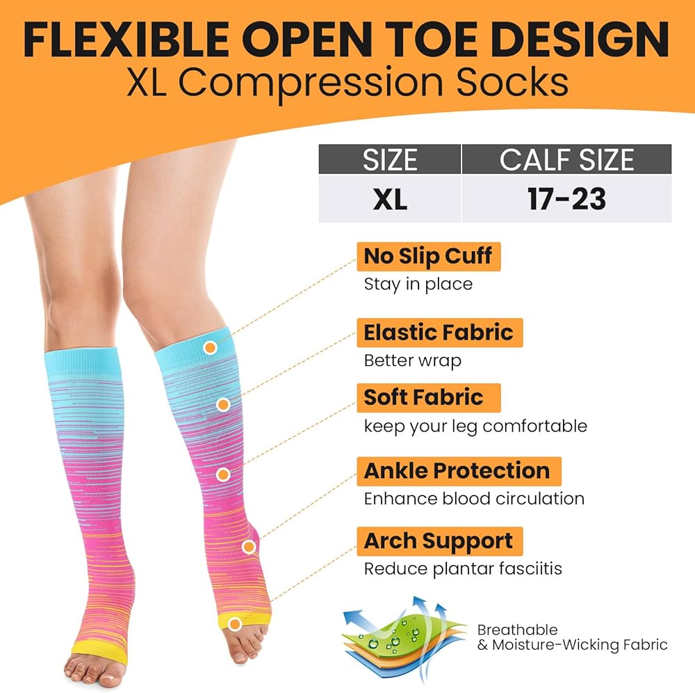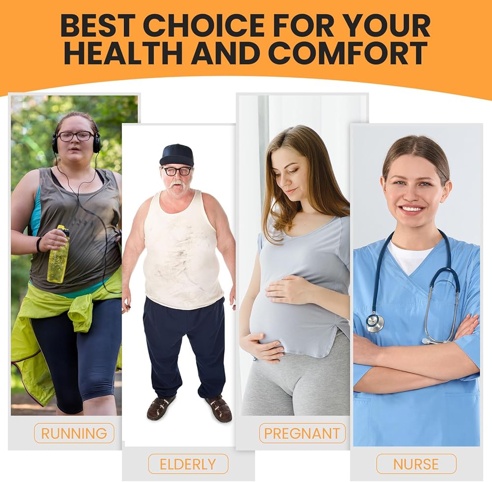 دعم قوي لساقيك: يتميز بتصميم دعم قوي ، توفر جوارب الدعم هذه الضغط من الكاحل إلى العجل ؛ هذا يدعم عروقك ، ويحسن تدفق الدم ، ويقلل من التورم ، ويساعد على منع عروق الدوالي ، وتخثر الوريد العميق ، وقضايا الدورة الدموية الأخرى ؛ احتضن الراحة وحرية الحركة التي توفرها هذه الجوارب