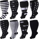 حزمة سخية: الحزمة تأتي مع 8 أزواج من جوارب ضغط الزائد حجم العجل على نطاق واسع للنساء والرجال ؛ كل زوج من الجوارب ذات قيمة الضغط من 20 إلى 30 مم زئبق ، هذه الجوارب مثالية لأولئك الذين لديهم عجول أكبر ؛ أنها توفر نوبة دافئة دون انقباض ، مما يسمح بدورة دموية أفضل ومنع التعب الساق