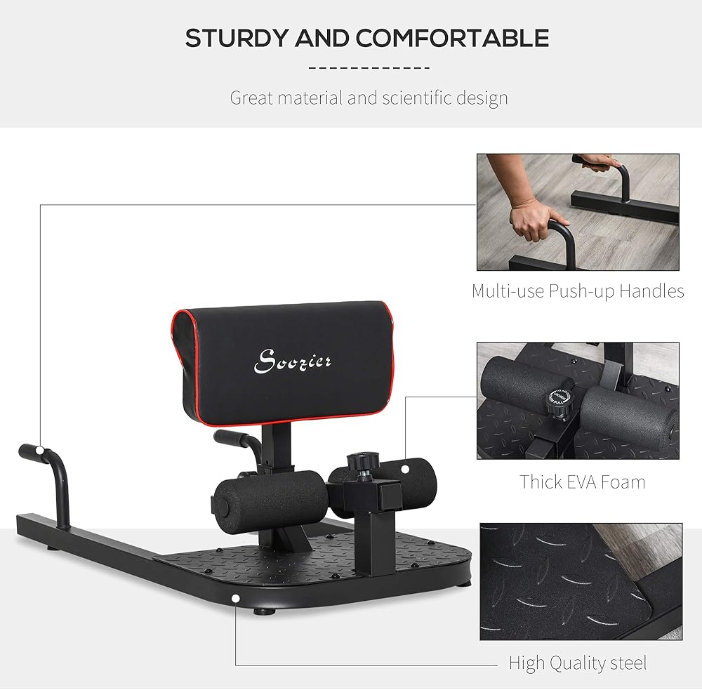 This 3-in-1 exercise machine helps you do perfect squats, sit-ups, and push-ups, so you can train your whole body in the workout. Slip your feet under the padded rollers during squats and sit-ups, and use the handles for push-ups. The height adjustable pads make this equipment versatile for all body types. Four suction cups keep the machine securely on the floor while you work out. Offering multiple exercises, this Soozier design brings more to your home gym without taking up much space.