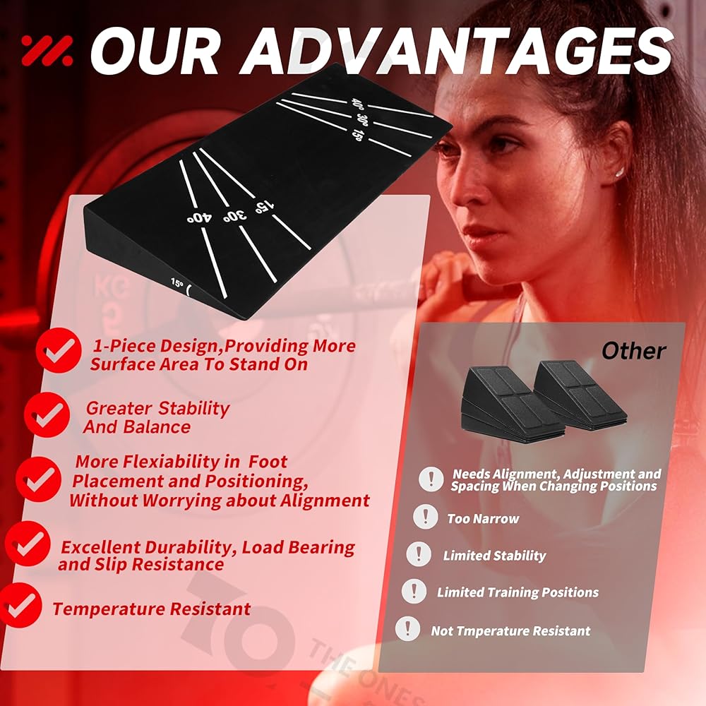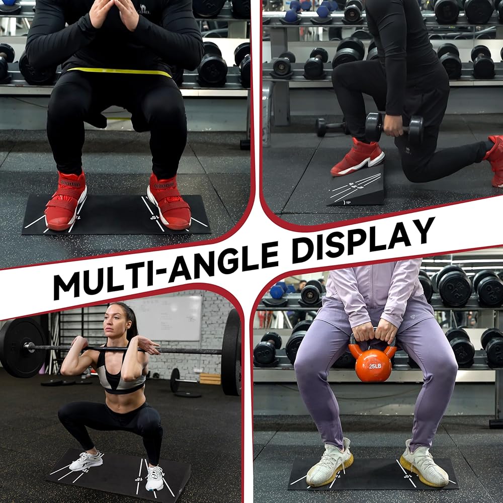 رفع شكل القرفصاء الخاص بك ومشاركة العضلات بشكل عام. يتيح لك لوحة مائلة لإسدادات الإسفين ومقاومة العجل تخصيص التدريبات المنخفضة في الجسم ، وتعزيز قوة ، والمرونة ، وأداء القرفصاء الأعمق.