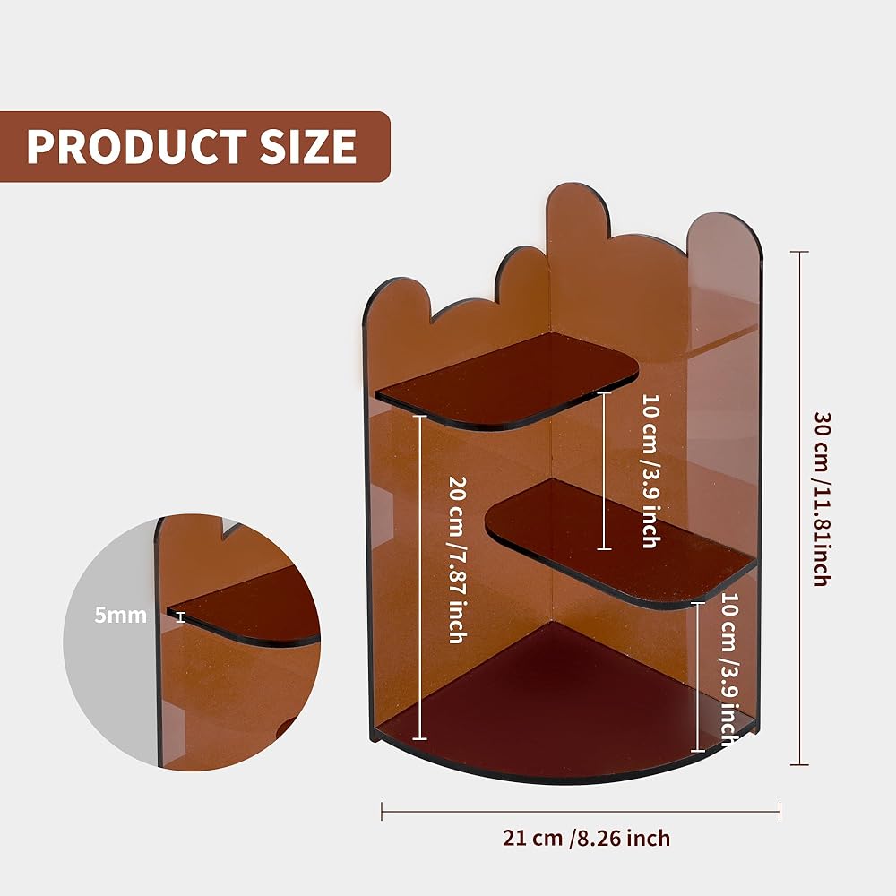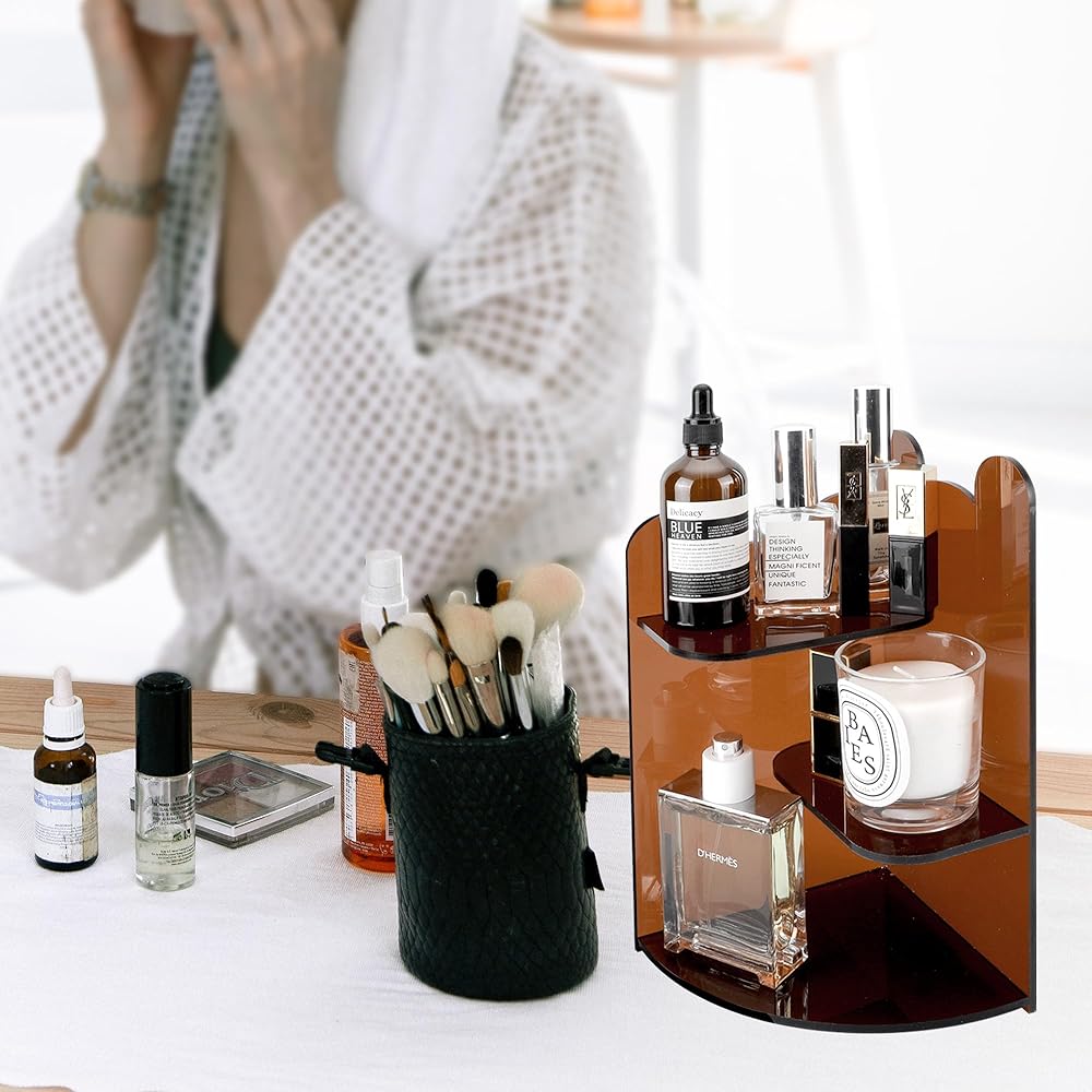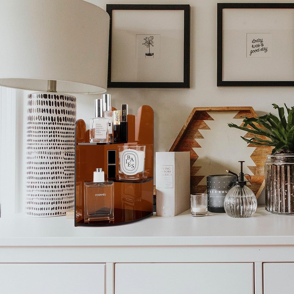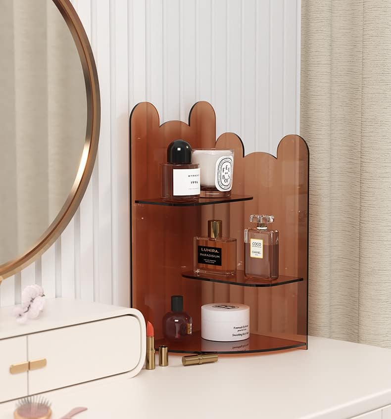 حامل عرض شفاف من 3 طبقات، حامل أكريليك للعرض، نماذج إبداعية لمنظمات الأكريليك للعطور، حامل عرض سطح المكتب للتنظيم والديكور (11.8 بوصة × 8.2 بوصة بني شفاف)