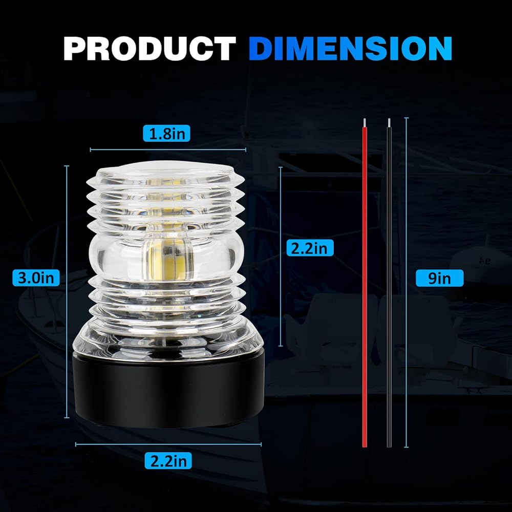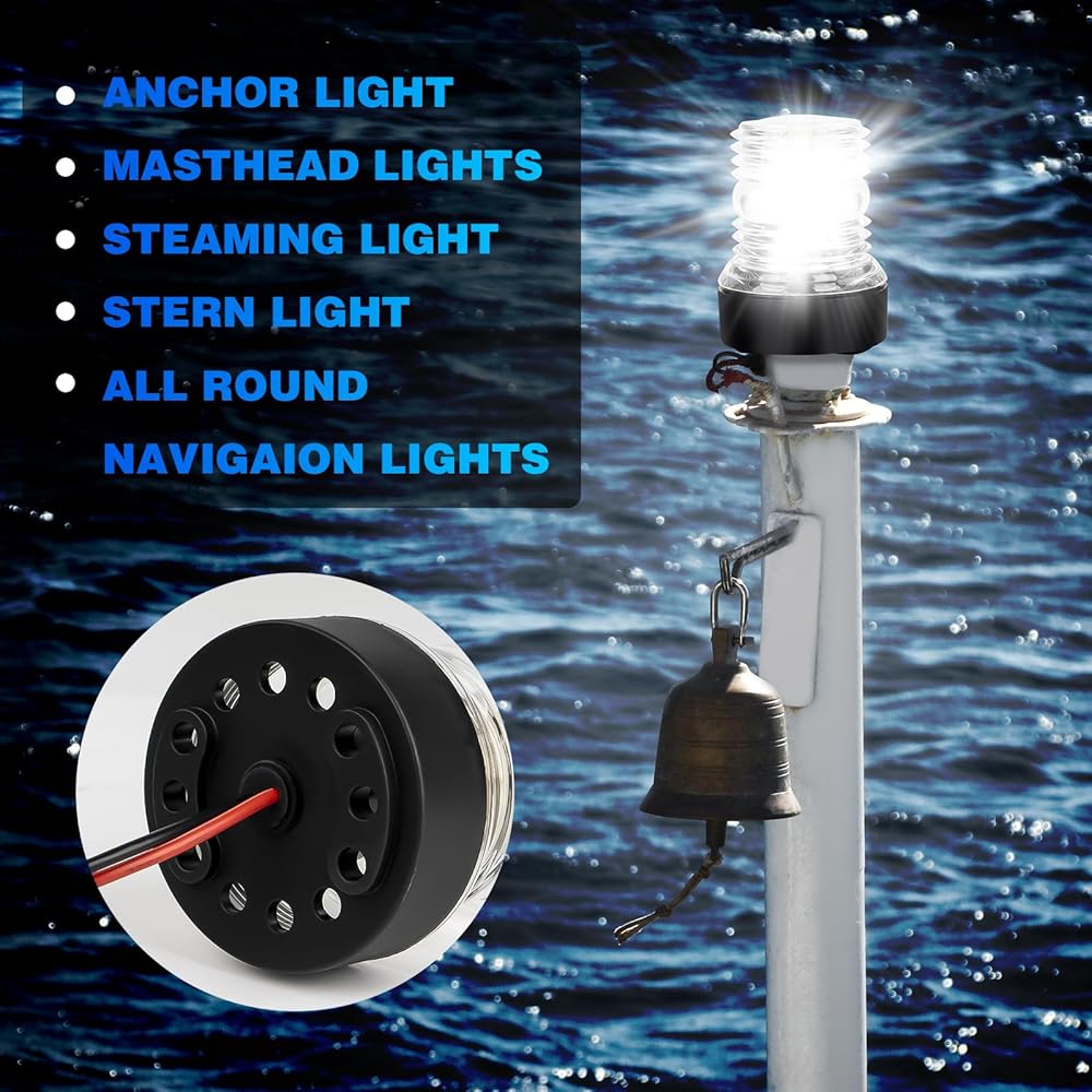 ضوء مرساة رأس الصاري ، 3nm الرؤية 360 درجة قارب جميع الضوء المستدير ، أضواء التنقل في القوارب البيضاء للمركبة للبحرية ، المركب الشراعي ، عائق ، قوارب طراد المقصورة وقوارب الصيد
