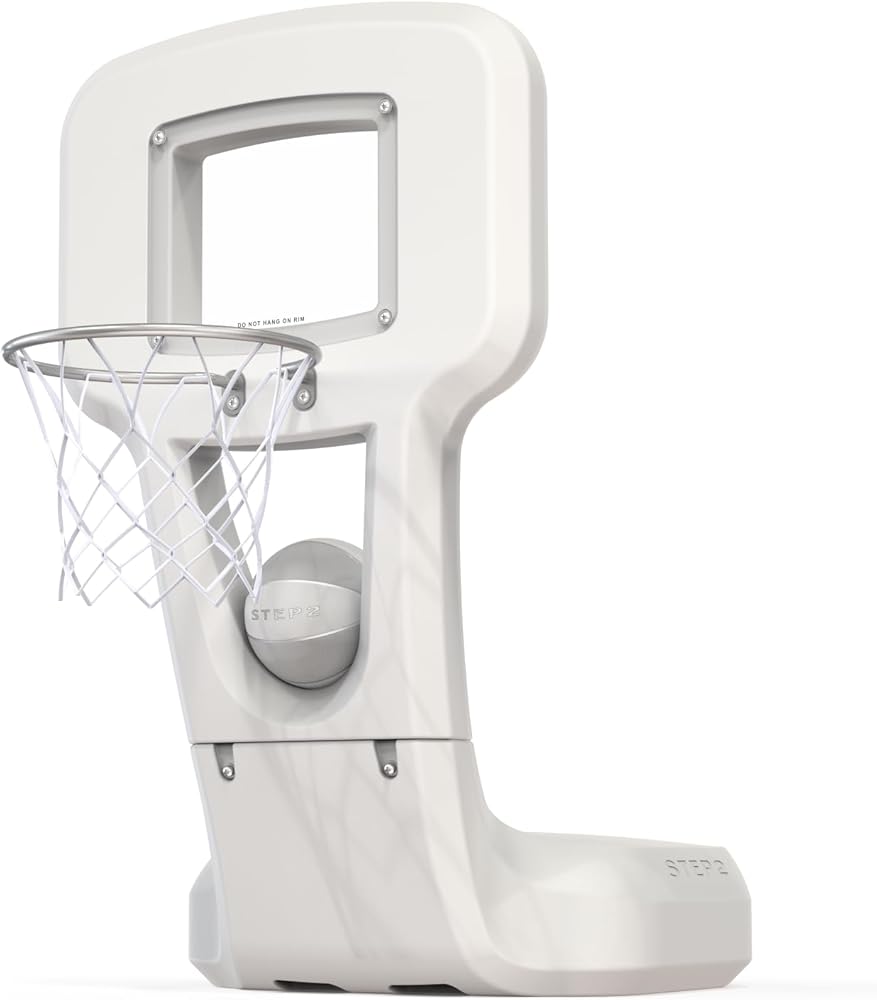 Bring the fun of the court to your pool with the Step2 Vero Poolside Basketball Hoop, perfect for outdoor or indoor use. Standing 4.5 feet tall, this durable hoop is made from double-walled plastic that resists damage from prolonged sunlight, chlorine, and saltwater, ensuring years of vibrant, crack-free performance. Its weighted base holds up to 250 lbs. of water for stability during play, while integrated wheels and a drain plug make it easy to move and empty as needed. The set includes a size 4 basketball, net, hand pump, and built-in ball storage, with assembled dimensions of 52.5" H x 29.5" W x 51.15" D. Designed for easy assembly and built to last, this weatherproof basketball hoop transforms your pool area into a hub of fun and friendly competition.