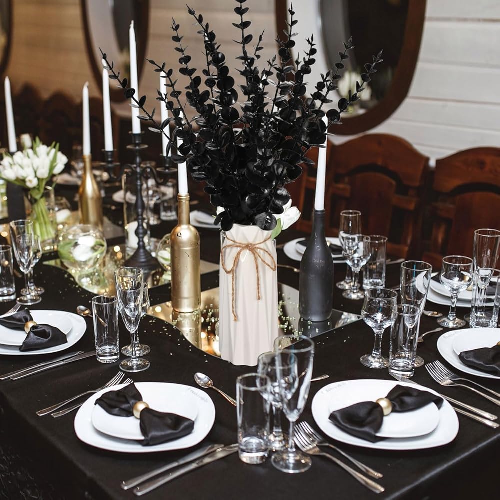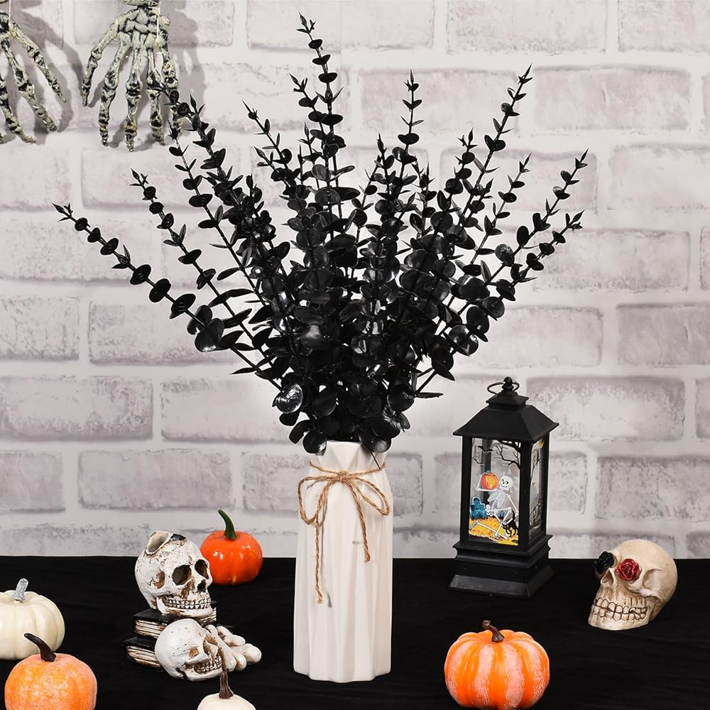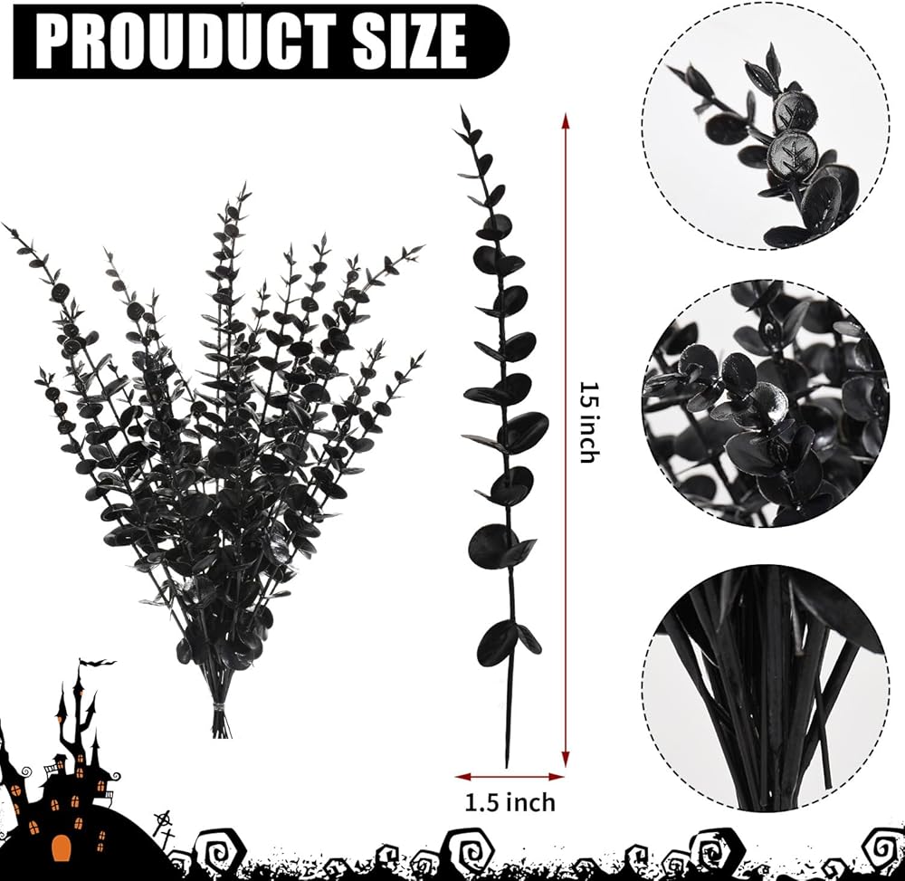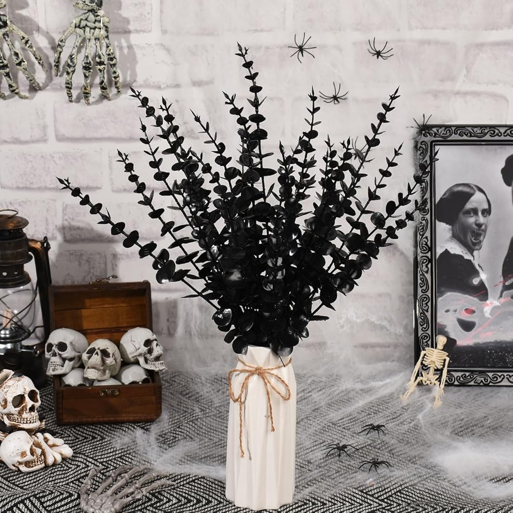 30 قطعة من سيقان الاوكالبتوس السوداء الاصطناعية، زهور صناعية سوداء للحفلات القوطية، زهور سوداء صناعية للديكور، باقة زهور صناعية لتزيين الطاولة بنفسك