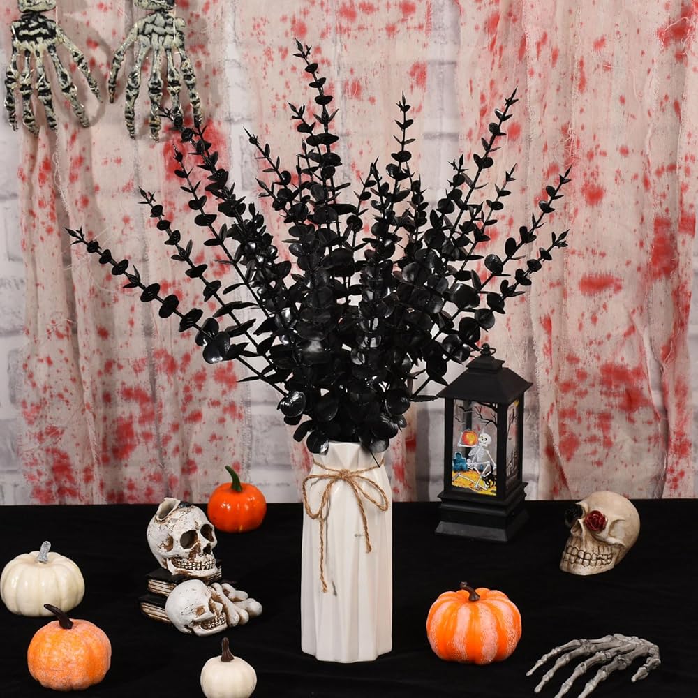 • زينة الهالوين: سيقان الأوكالبتوس الاصطناعية السوداء هي الديكور المثالي للهالوين. مقترنة بالجماجم والخفافيش، ستجعل حفلة الهالوين الخاصة بك أفضل.