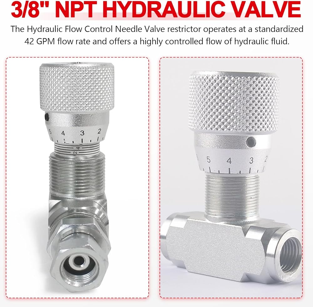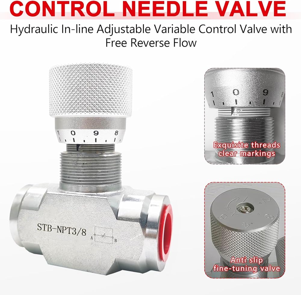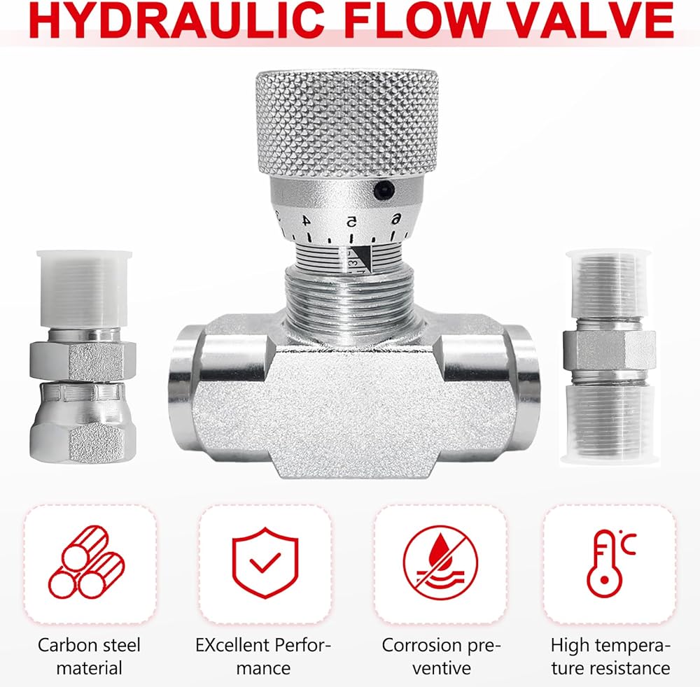 STURDY BUILD:Our hydraulic Two-way Throttle Valve is long-lasting, and precision machined from carbon steel. It has high endurance and can withstand upto 5800 PSI of pressure, and 176°F temperature,Superb Performance of Maintaining the Working Function.