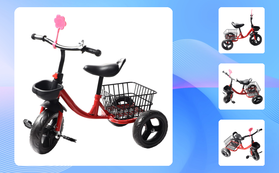 ركوب]: هذه الدراجة الثلاثية هي للمبتدئين ، ويوفر الراحة والراحة والمرح. تضمن إطارات الركوب الهادئة رحلة سلسة مع تعزيز المهارات الحركية الإجمالية للأطفال الصغار وأطفال ما قبل المدرسة.