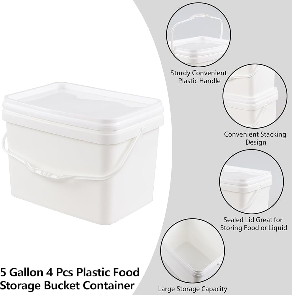 These plastic food grade bucket shape with rectangular, capacity is 5 gallon/20 liters, built with robust plastic handle, which is a perfect solution for transporting or dumping food items