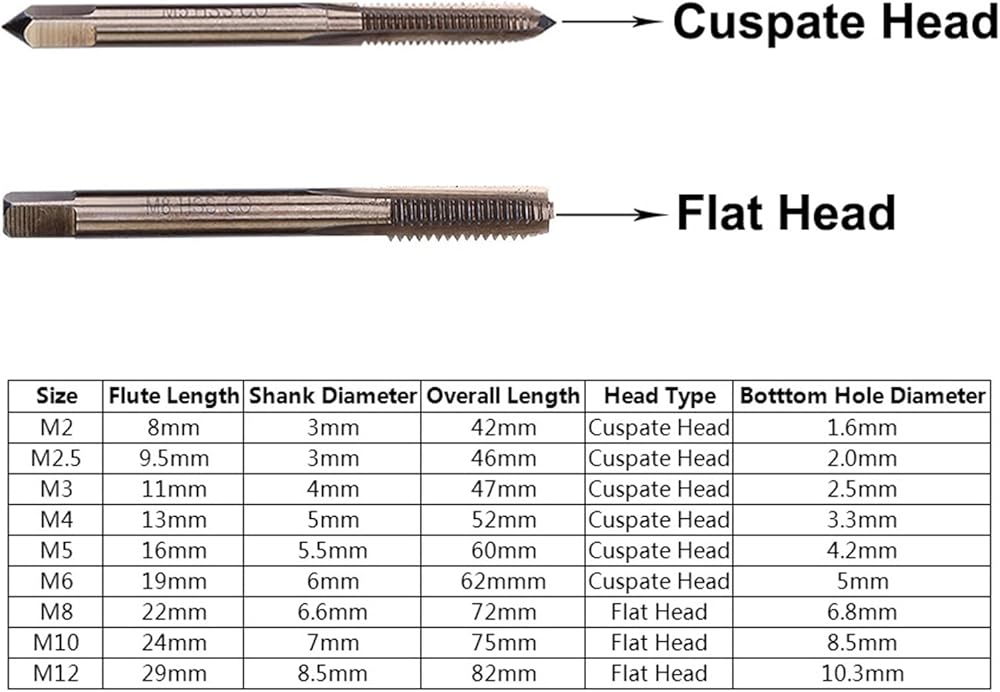 10pcs الكوبالت برغي الحفر بتات الحفر صنابير الصلب المعدني المقاوم للصدأ (M2 M2.5 M3 M4 M5 M6 M8 M10 M12) (M2)