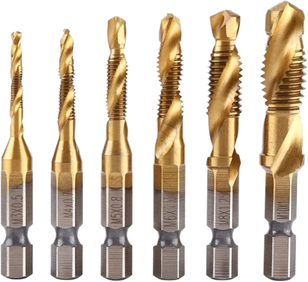 6PCS M3-M10 Screw Tap Drill Bits Taps Woodworking Metric Combination Bit 1/4 INCH Quick Change Hex