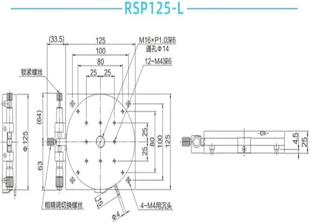 R AXIS 125mm RSP125-L 360 درجة منصة الدوران المنزلق مرحلة تحمل المرحلة الخطية 49N 5KGF 125MM