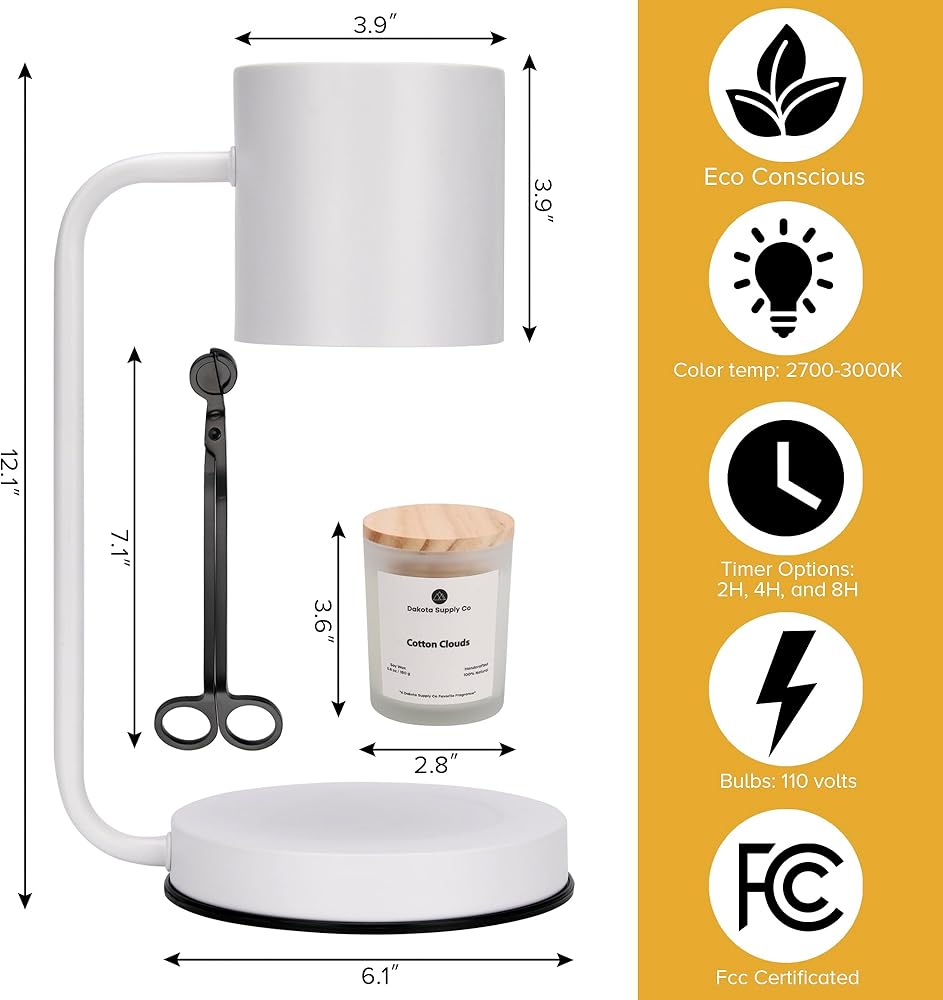 تعزيز السلامة والكفاءة - قل وداعًا لمخاوف اللهب المفتوحة ومتاعب مراقبة الشموع المحترقة باستمرار. توفر مصابيح تدفئة الشموع لدينا بديلاً آمنًا وعديم اللهب، مما يوفر راحة البال بينما يسمح لك بالاستمتاع بالتوهج المهدئ والعطور الجذابة. تعمل مصابيحنا على تسخين الشموع بكفاءة من الأعلى، مما يؤدي إلى إطلاق الرائحة بلطف دون التعرض لخطر الحرائق العرضية. استمتع بالأجواء المريحة للشموع مع زيادة الأمان والراحة.