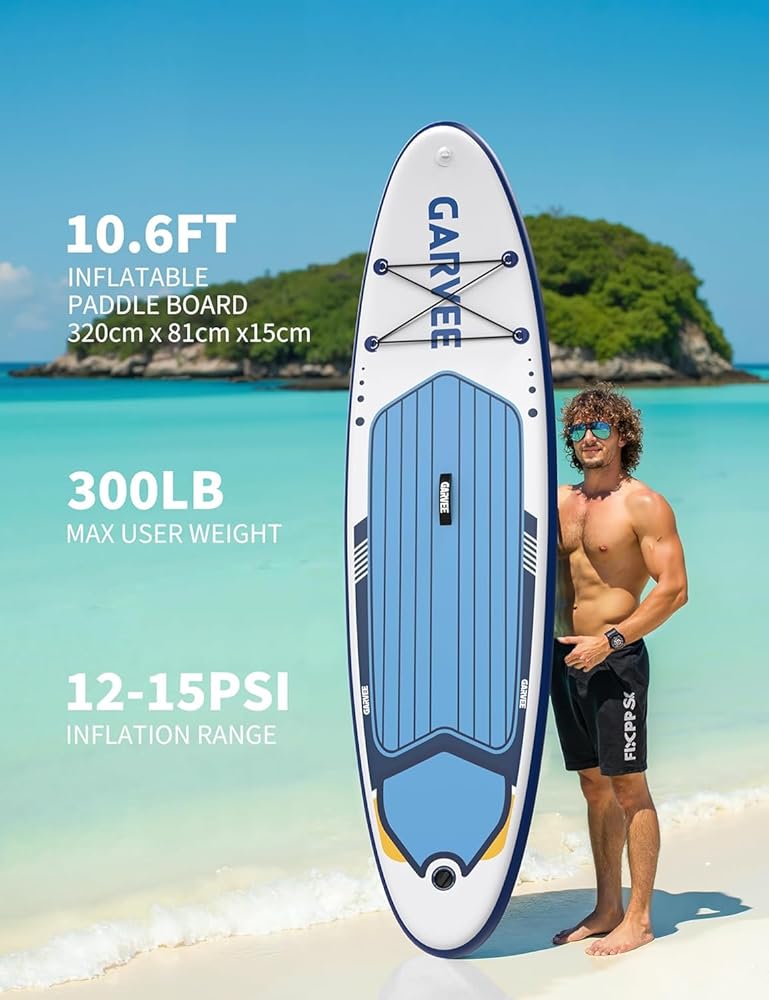 【Versatile Board】This standup paddle board comes in 32" and 34" widths to match your style – whether you're gliding solo or sharing adventures with kids/pets. The ultra-stable wide base ensures effortless balance for yoga poses, fishing trips, or family paddling on lakes and rivers. Beginners love the 32" for maneuverability , while the 34" gives experts extra space for gear-packed touring.