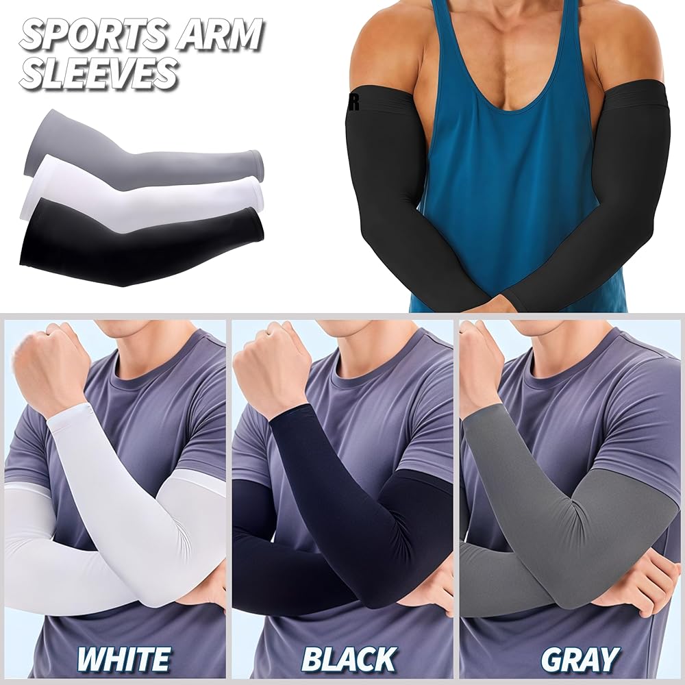 يتناسب حجم واحد أكثر: يتضمن 3 أزواج من أكمام حماية الشمس بألوان أسود وأبيض ورمادي كلاسيكي ، مصممة للسماح لك بأقصى قدر