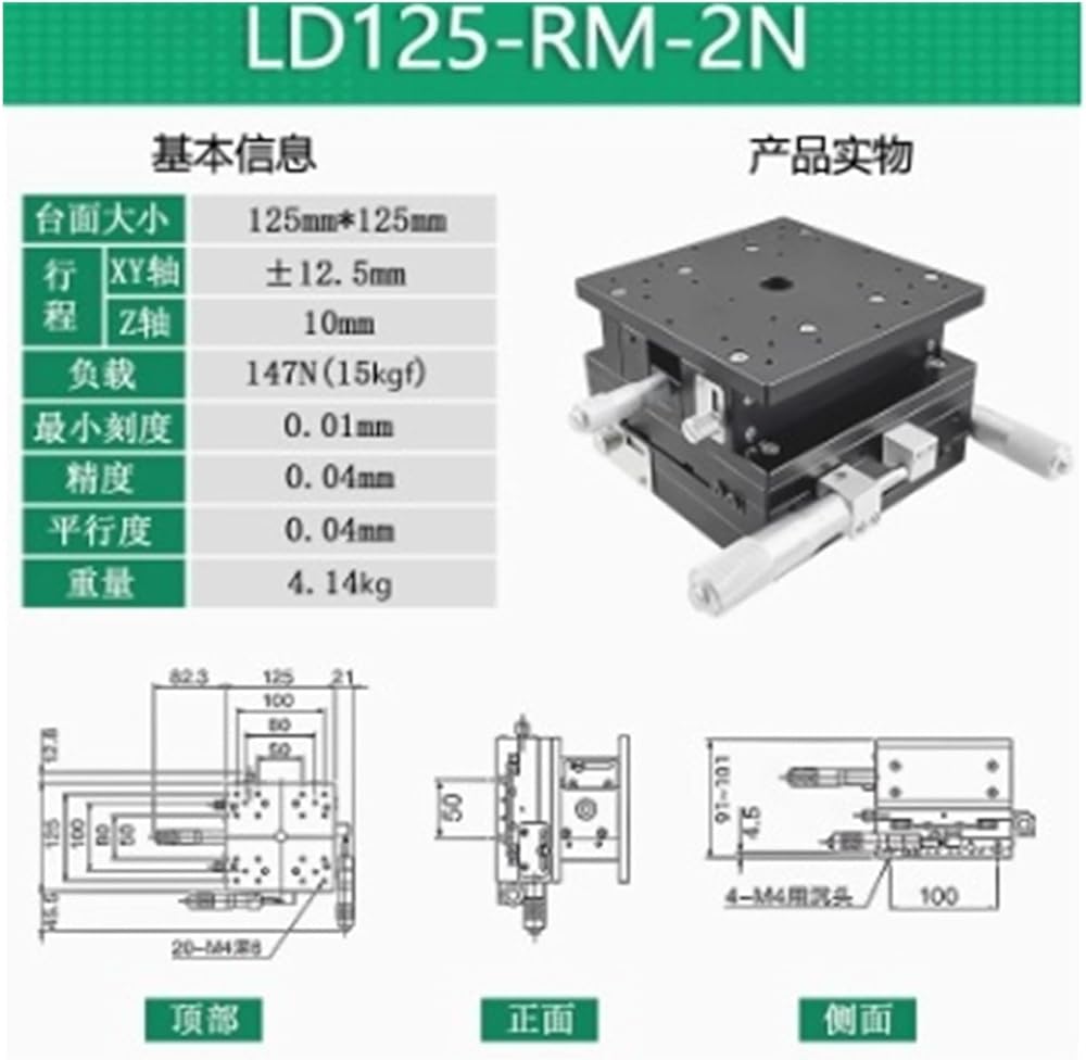 LD125-RM-2N XYZ-axis Displacement Platform, Three-axis Manual Lifting Workbench, Optical Precision Micro-adjustment Sliding Table