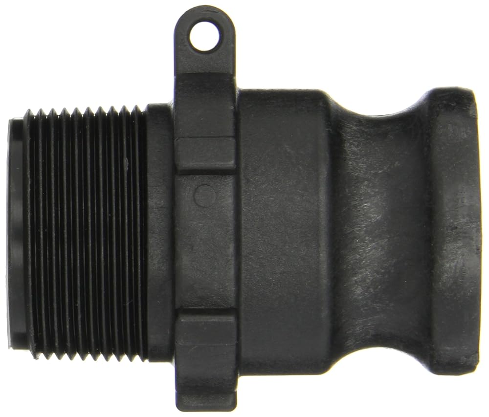 Price For: Each Standards: MS27019 Gasket Material: EPDM Coupling Type: F Body Material: Polypropylene Item: Adapter Fittings Sub-Category: Adapters Connection Type: Male Adapter x MNPT Coupler Size: 1-1/2" Max. Pressure: 125 psi Pipe Size: 1-1/2" Country of Origin (subject to change): United States