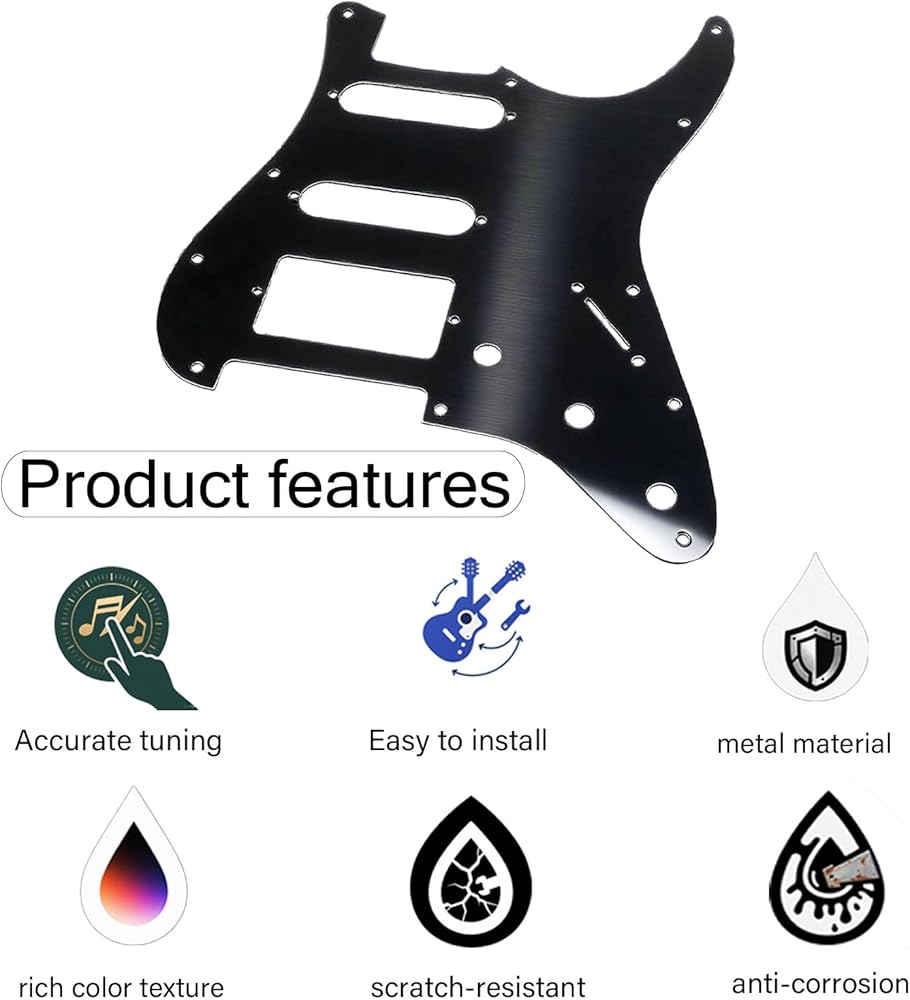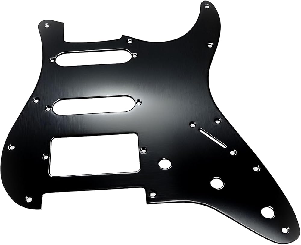 HSS Metal Guitar Pickguard 11 Hole - متوافق مع Guitars على طراز Strat و Fr Tremolo Bridges ، وتناسب سلسلة American Standard/Player ، الفولاذ المقاوم للصدأ (أسود)