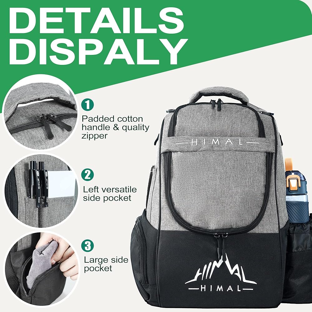 【Versatile Pockets】The upper compartment stores clothing or additional discs, while multiple pockets accommodate water bottles, keys, wallets, scorecards, and other essentials