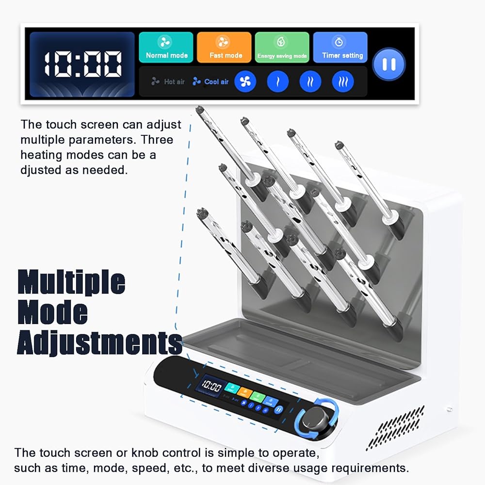 Multiple Mode Adjustment】 The touch screen and knob control are simple to operate, such as time, mode, speed, etc., to meet diverse usage requirements. The touch screen can adjust multiple parameters and has three heating modes.