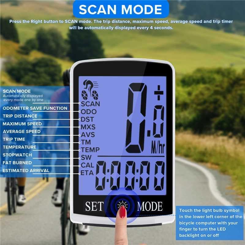 • 【Auto Wake-up Function】The bicycle computer will enter the standby sleep mode when there is no signal input for 5 minutes. When you touch the screen of the bicycle speedometer or start cycling, the bike odometer will automatically start working and, remember the values before the sleep mode and can also re-record the data according to your needs