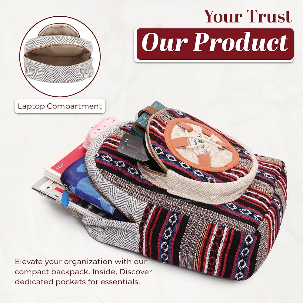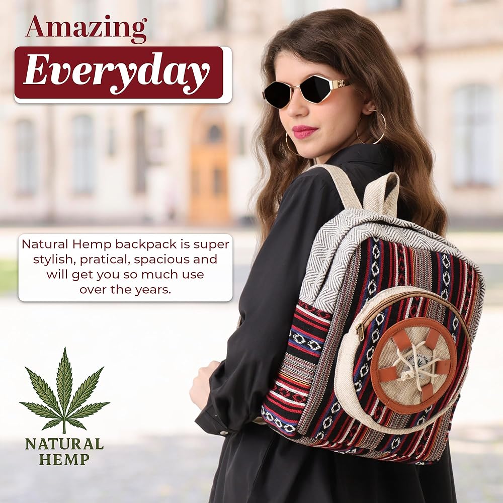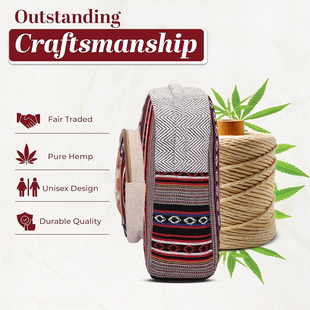 حقيبة ظهر من قطن القنب - حقيبة صديقة للبيئة ومتينة ومتوافقة مع الكمبيوتر المحمول للمشي لمسافات طويلة والاستخدام غير الرسمي وحقيبة نهارية عملية (Boho Hippie-2)
