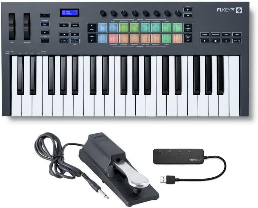 Bundle Includes: Novation FLkey 37 37-Key MIDI Keyboard Controller for FL Studio, KSP100 Keyboard Piano Style Sustain Pedal (Black), and 4-Port USB 3.0 Hub