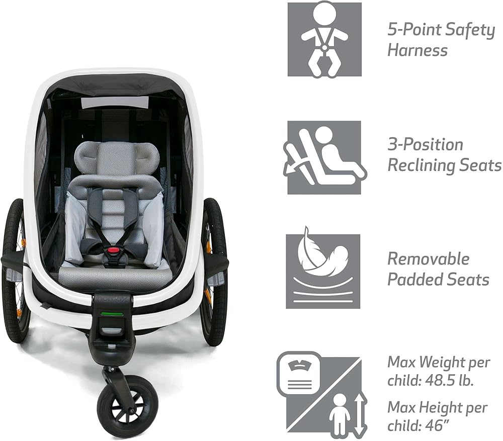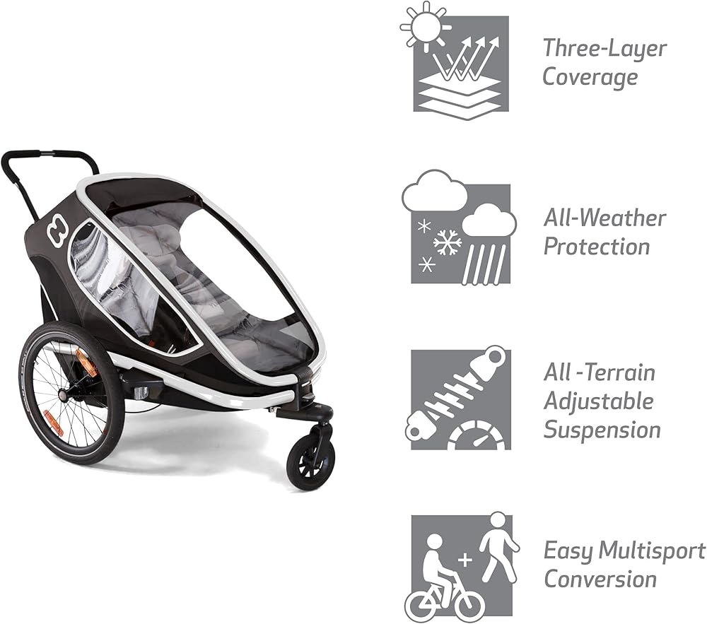 The ultimate multi-sport bike trailer + stroller designed for every family adventure. Bike and stroller kits included. Expand your adventures with optional ski and jogger conversion kits (sold separately). *Also offered in a two-seater model.