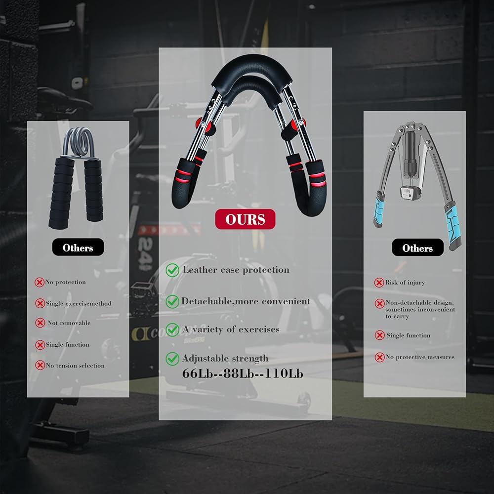✔️3 Progressive Resistance Levels (66-110 LBS): Train smarter with the twister arm trainer and its precise resistance control. Level 1 (66 lbs) for beginners, Level 3 (110 lbs) for elite athletes. Your perfect arm and chest trainer!
