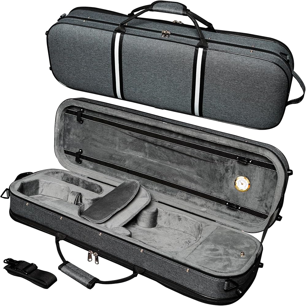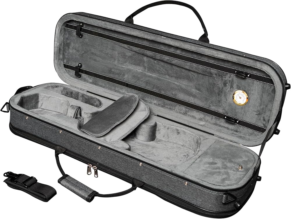 🎻 جيوب متعددة - كل من حالات أداة الكمان الخاصة بنا تتميز بحامل القوس المريحان ، وجيب خلفي كامل الطول لعقد صفائح الموسيقى ، واثنين من مقصورتين تخزين داخلي إضافيين لعقد روزن أو كتف أو موالف أو غيرها من ملحقات الأدوات. يتيح مقياس الرطوبة المدمج للاعبين مراقبة الرطوبة بسهولة لحماية أداةك.