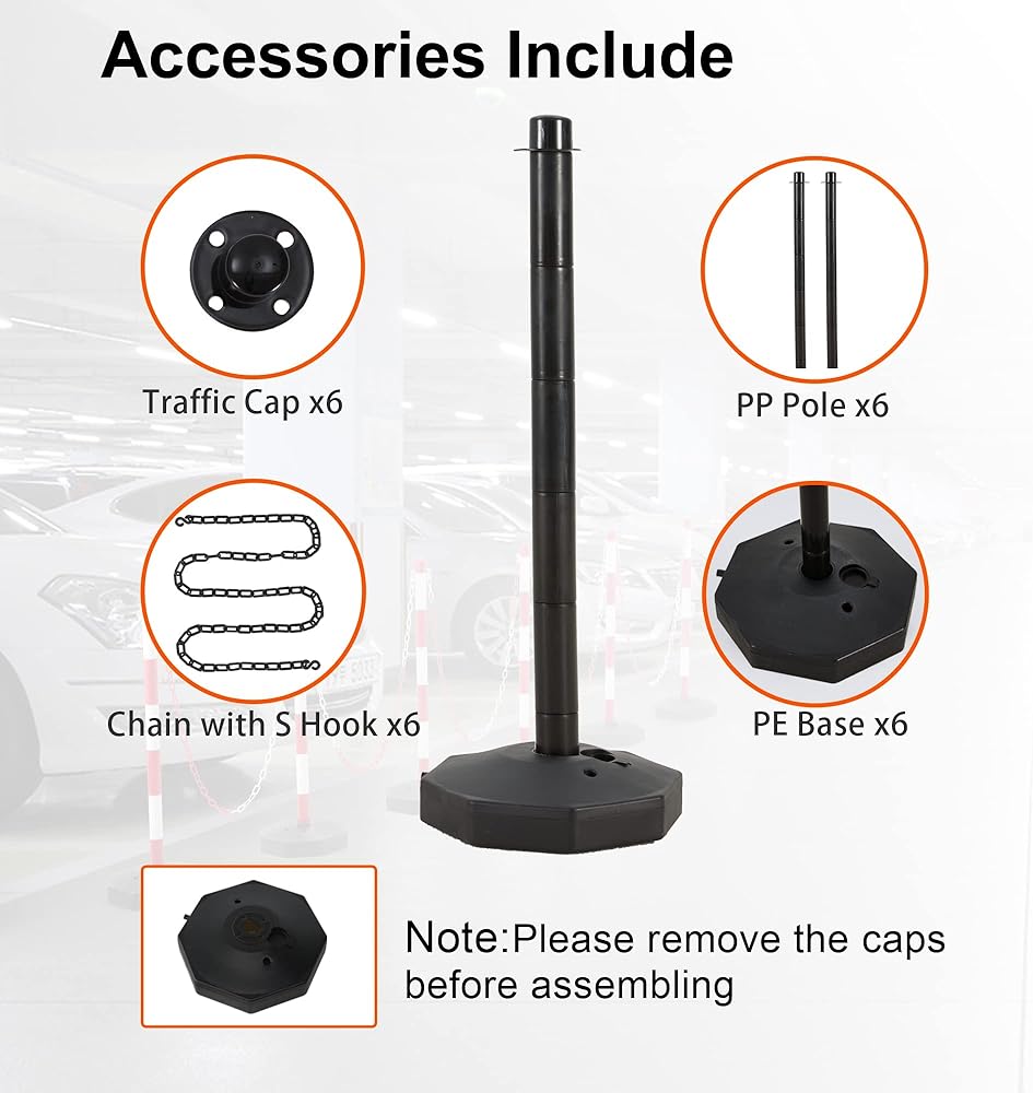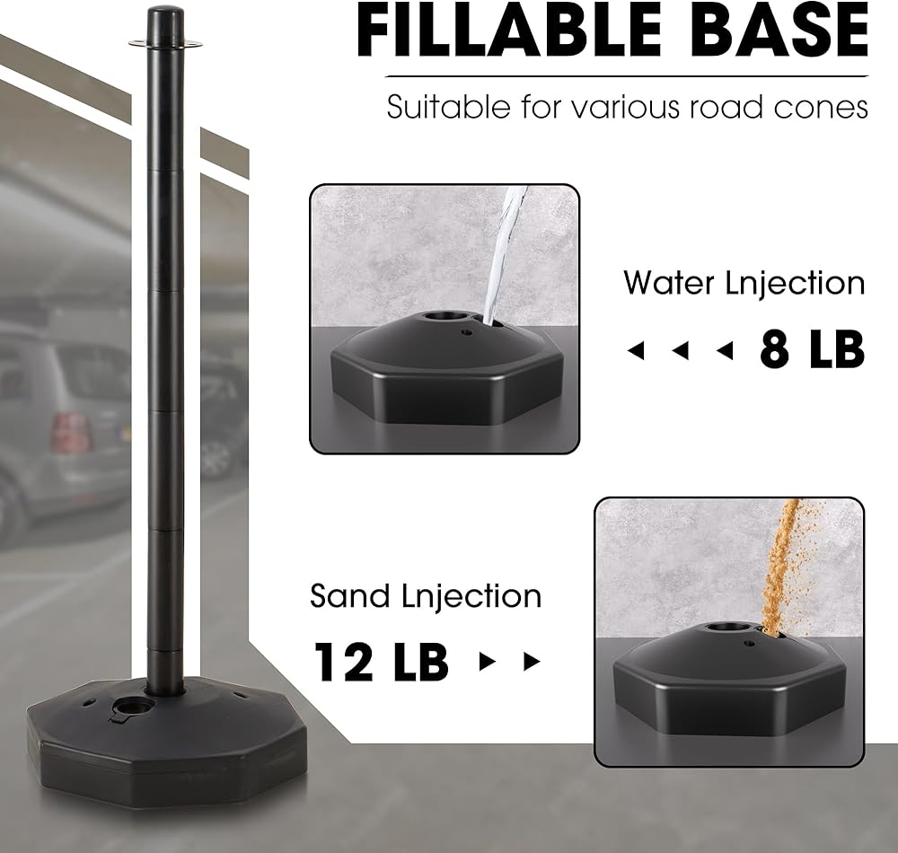 تصميم قاعدة قابلة للملء: يمكنك ملء 8 رطل من الماء أو 12 رطلاً من الرمال والحفاظ على حاجز السيارات أكثر استقرارًا. يمكنك أيضًا صب الماء أو الرمال إذا لم تستخدم مخاريط البناء.