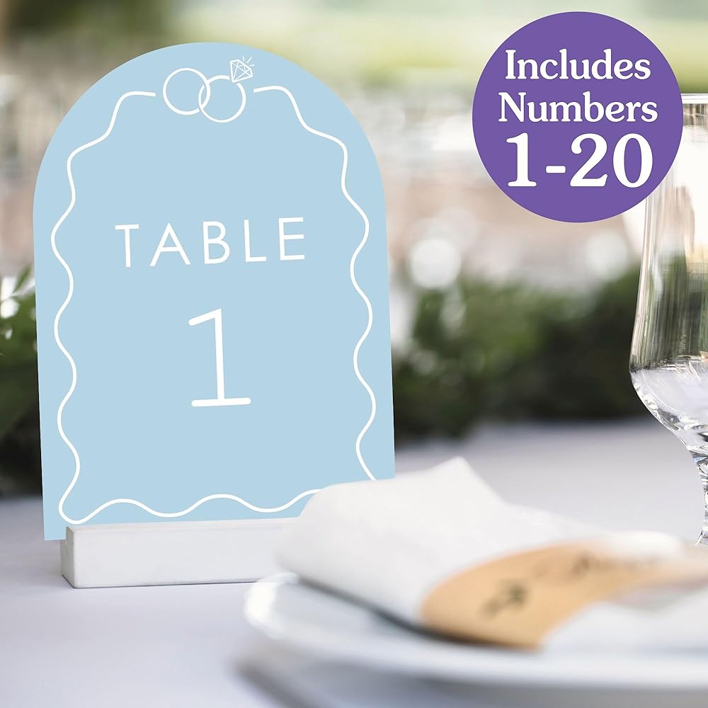 • ديكور سهل: ساعد الضيوف على تحديد موقع مقاعدهم في احتفالك طوال الوقت أثناء عرض إعداد طاولة جميل! إقران أرقام الجدول مع المزهريات وترتيبات الزهور أو اجعلها بارزة عند استخدامها كقطعة مركزية رئيسية. من الأحداث الرسمية إلى اللقاءات غير الرسمية ، تعد أرقام طاولة زفاف الزفاف المتربة إضافة ممتازة لإعداد الجدول الخاص بك.