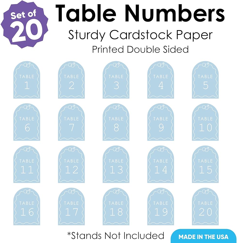 • تتضمن أرقام طاولات الزفاف الزرقاء المتربة: بطاقات الجدول مرقمة من 1-20. كل بطاقة تقيس 5 "عريض × 7". تعد ملحقات الطاولة هذه مثالية لحفل زفافك أو حفل الذكرى السنوية أو الأحداث وستناسب موقفًا كبيرًا من اختيارك.