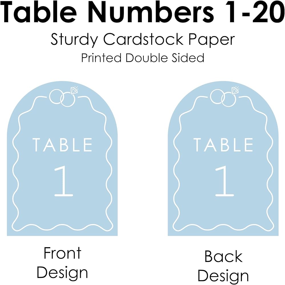مجموعة كبيرة من السعادة خواتم الزفاف الأزرق الأزرق أرقام ، المشاركة وديكور حفل الذكرى ، قطع الزفاف ، بطاقات 5 × 7 بوصات على الوجهين ، أرقام الطاولة-1-20