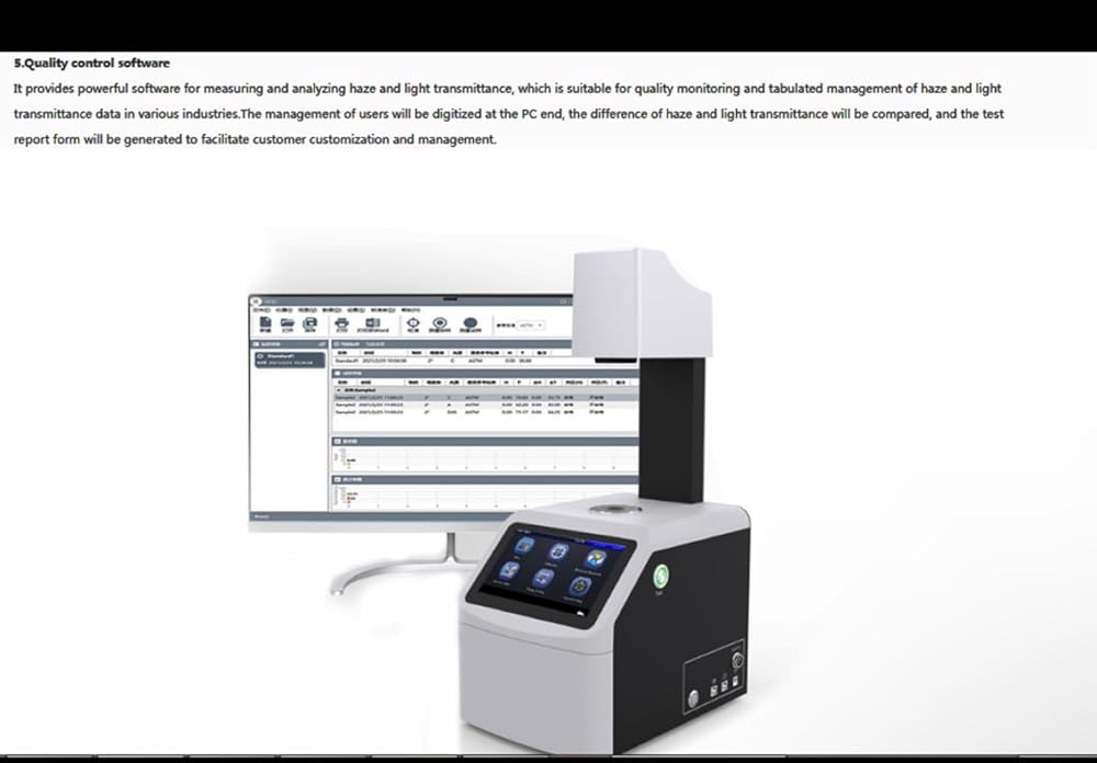 • 5. قياس القياس والانتقال {برنامج مراقبة الجودة} ----------------- يوفر برنامجًا قويًا لقياس وتحليل الضباب والانتقال الخفيف ، وهو أمر مناسب لمراقبة الجودة وإدارة جدولة لبيانات الضباب والضوء في مختلف الصناعات.