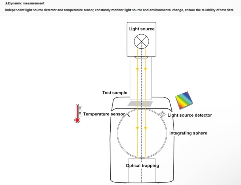 • 3.Transparency و Haze Meter {القياس الديناميكي} --------------- كاشف مصدر الإضاءة المستقل ومستشعر درجة الحرارة ، مراقبة مصدر الضوء باستمرار والتغيير البيئي ، ضمان موثوقية بيانات الاختبار.
