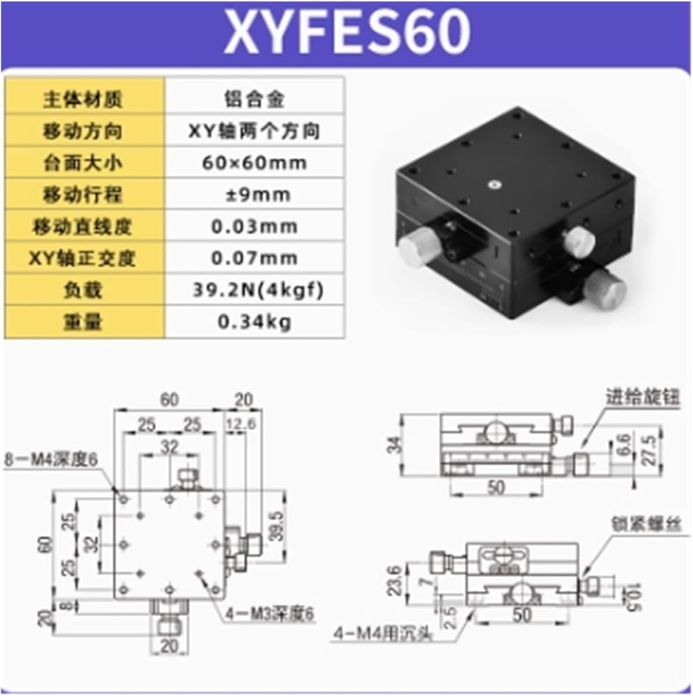 XYFES60 XY-axis Manual Fine Adjustment Slide Table With Dovetail Groove Displacement Stage