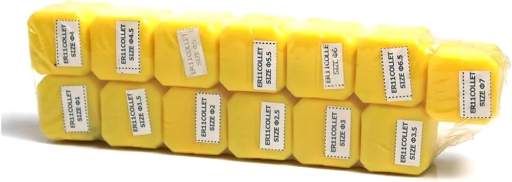 13 x ER11 collets (1mm, 1.5mm, 2mm, 2.5mm, 3mm, 3.5mm, 4mm, 4.5mm, 5mm, 5.5mm, 6mm, 6.5mm, 7mm)