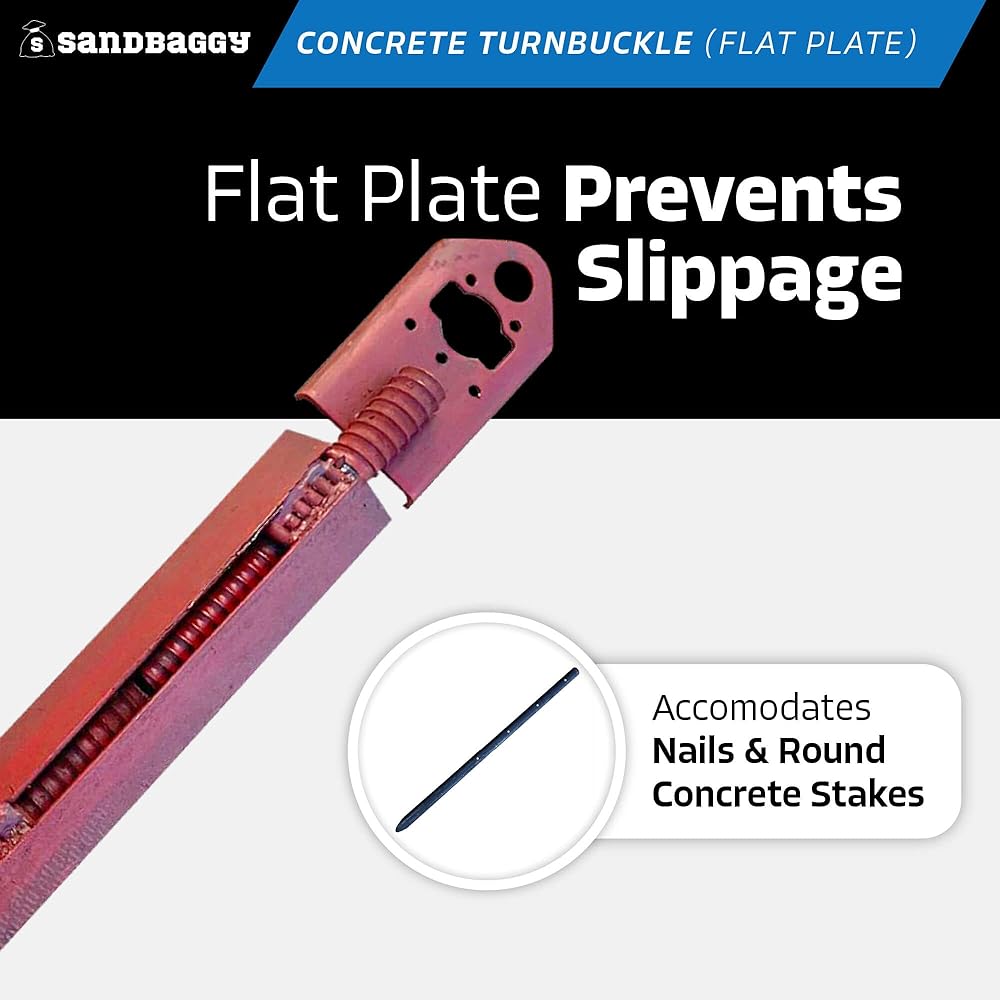 يستوعب الأظافر والمخاطر الخرسانية المستديرة: يأتي مع ثقوب الأظافر للربط الآمن مع الصالات. يحتوي على حفرة كبيرة 15/16 في وسط اللوحة لاستيعاب 3/4 "أو 7/8" حصص فولاذية مستديرة عند تركيب القوس من الألف إلى الياء.