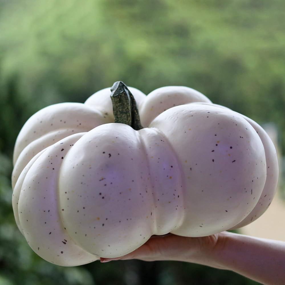 قرع صناعي كبير من WsCrofts، 12.6 بوصة قرع صناعي مصنوع يدويًا لمهرجان الخريف وعيد الشكر وديكور الهالوين (بقع بيضاء)