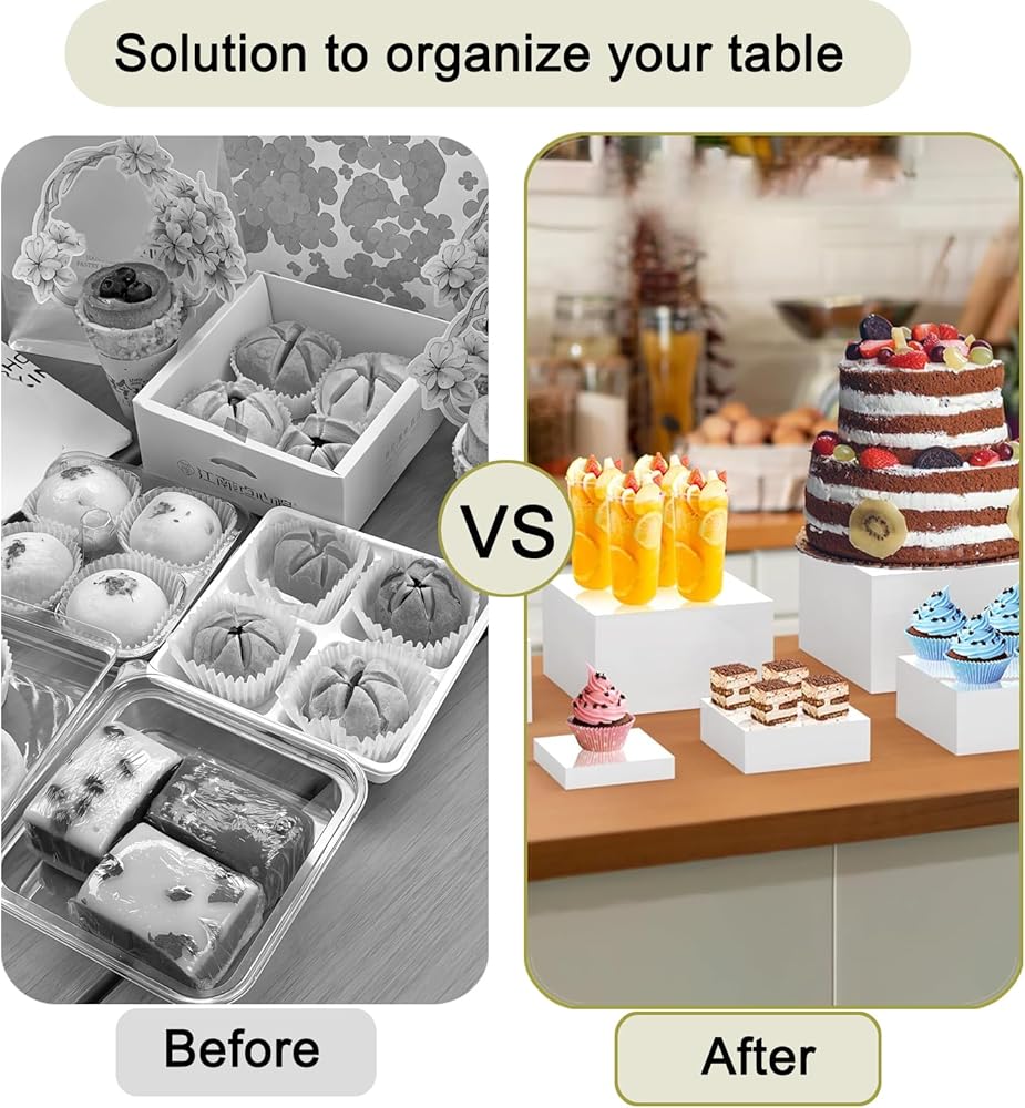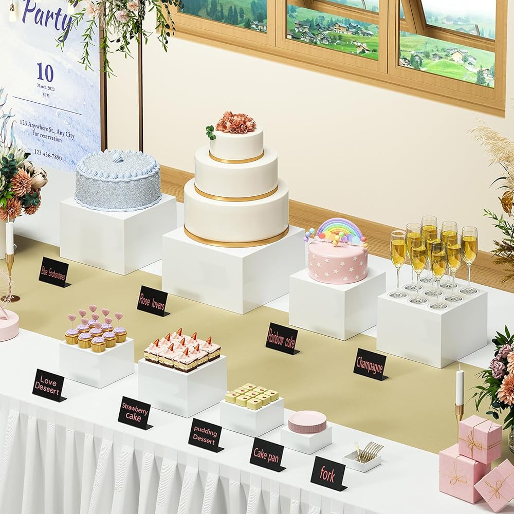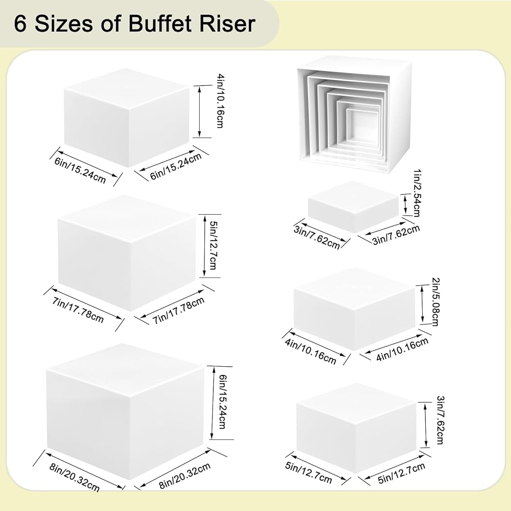 Yimy 6 PCS Acrylic Buffet Risers Set: White Dessert Table Display Set, Transform Your Display with Style and Versatility
