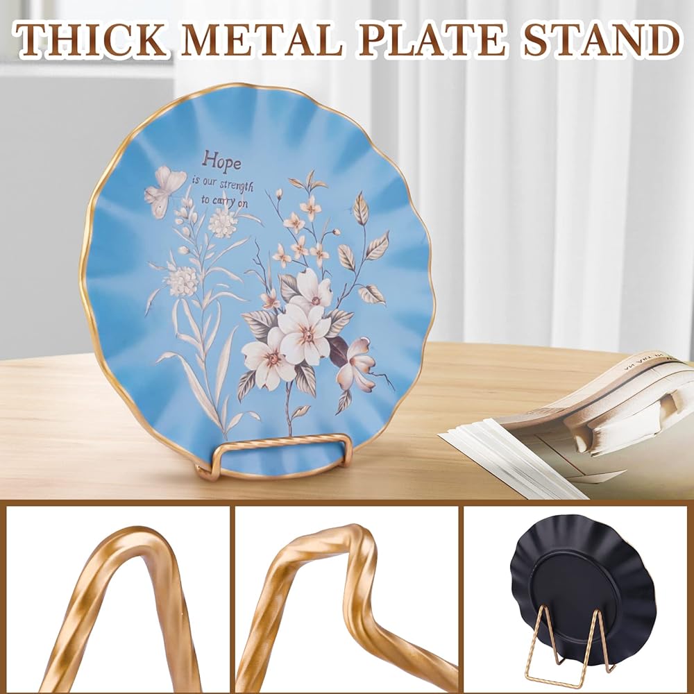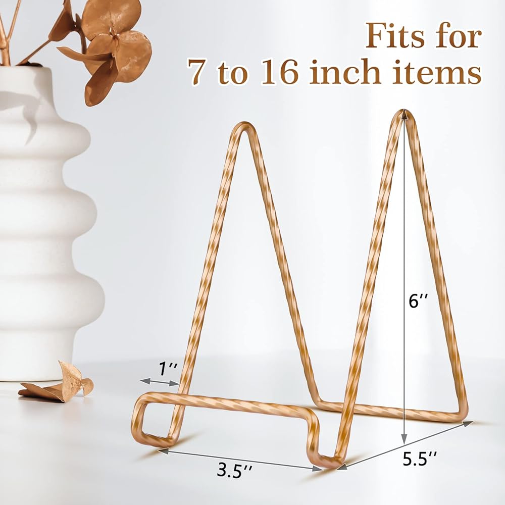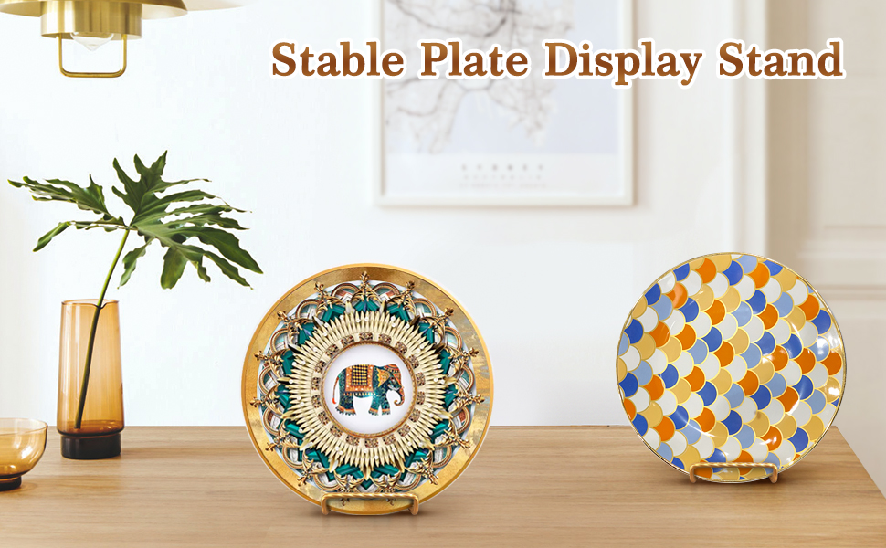 🌺[تصميم ثابت وبسيط] --لقد أحدثنا فرقًا بسيطًا عن حامل الأطباق المشابه الآخر في السوق، حيث يلامس الجزء السفلي من اللوحة السطح الذي يتم وضعه عليه قبل أن يتأرجح الحامل، حتى لا يكون حامل اللوحة الخاص به للأطباق المستديرة الكبيرة فقط تلك المسطحة. يمكن لحامل الأطباق الخاص بنا أن يحمل جميع أنواع الأطباق المسطحة أو المستديرة وإطارات الصور بحجم معين.