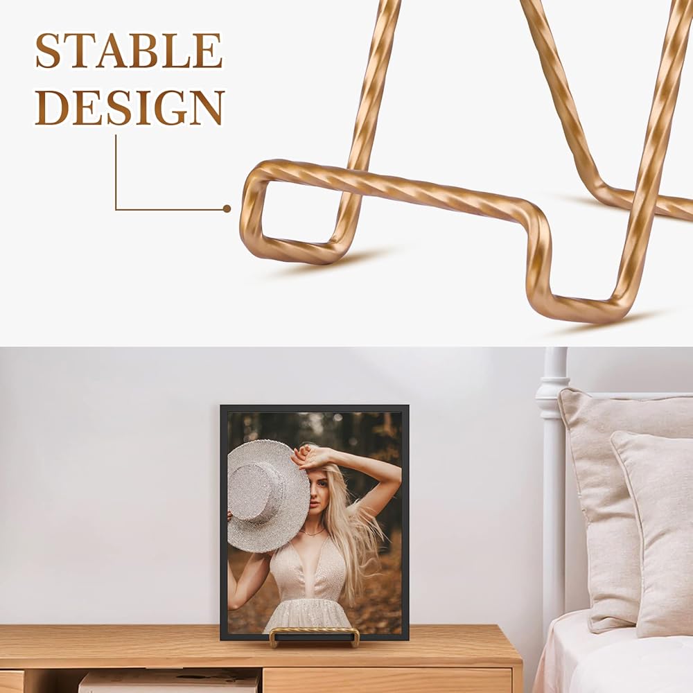 🌺[جودة جديرة بالثقة] - تم تصميم حوامل اللوحة المزخرفة هذه بسلك معدني قوي عالي الجودة وشكل ثابت ومضاد للشيخوخة وعمر خدمة طويل. بفضل التصميم المختصر والأنيق، يضمن حامل العرض الخاص بحامل اللوحة عرض العمل الفني بشكل آمن ويصبح محور التركيز.
