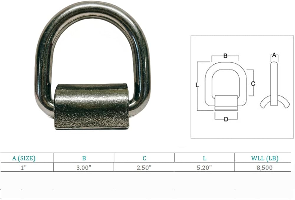 4 Pc Stainless Steel T316 Weld-On Lashing Ring