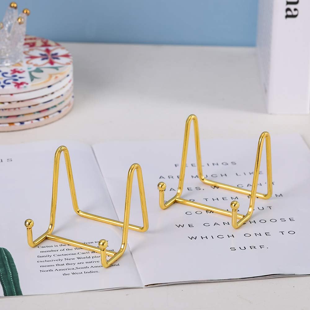 حامل اللوحة للعرض - حامل اللوحة، حامل العرض، حامل الطاولة، حامل إطار الصورة، حامل عرض الصورة|لوحة زخرفية |طبق | لوحة فنية لسطح الطاولة-3 بوصة-ذهبي