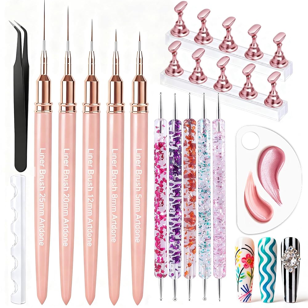 الميزات: مجموعة متنوعة من أحجام الفرشاة رائعة لتصميم فن الأظافر ، مما يساعدك على إنشاء أنماط أظافر جميلة في ثوانٍ. مثالي لرسم خطوط رقيقة رقيقة ، رائعة للحصول على تفاصيل صغيرة ، ضربات قصيرة.